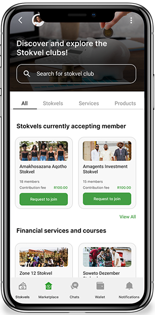 Connect with your local stokvels effortlessly. Search and join existing stokvels.